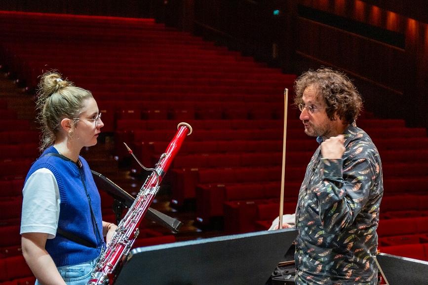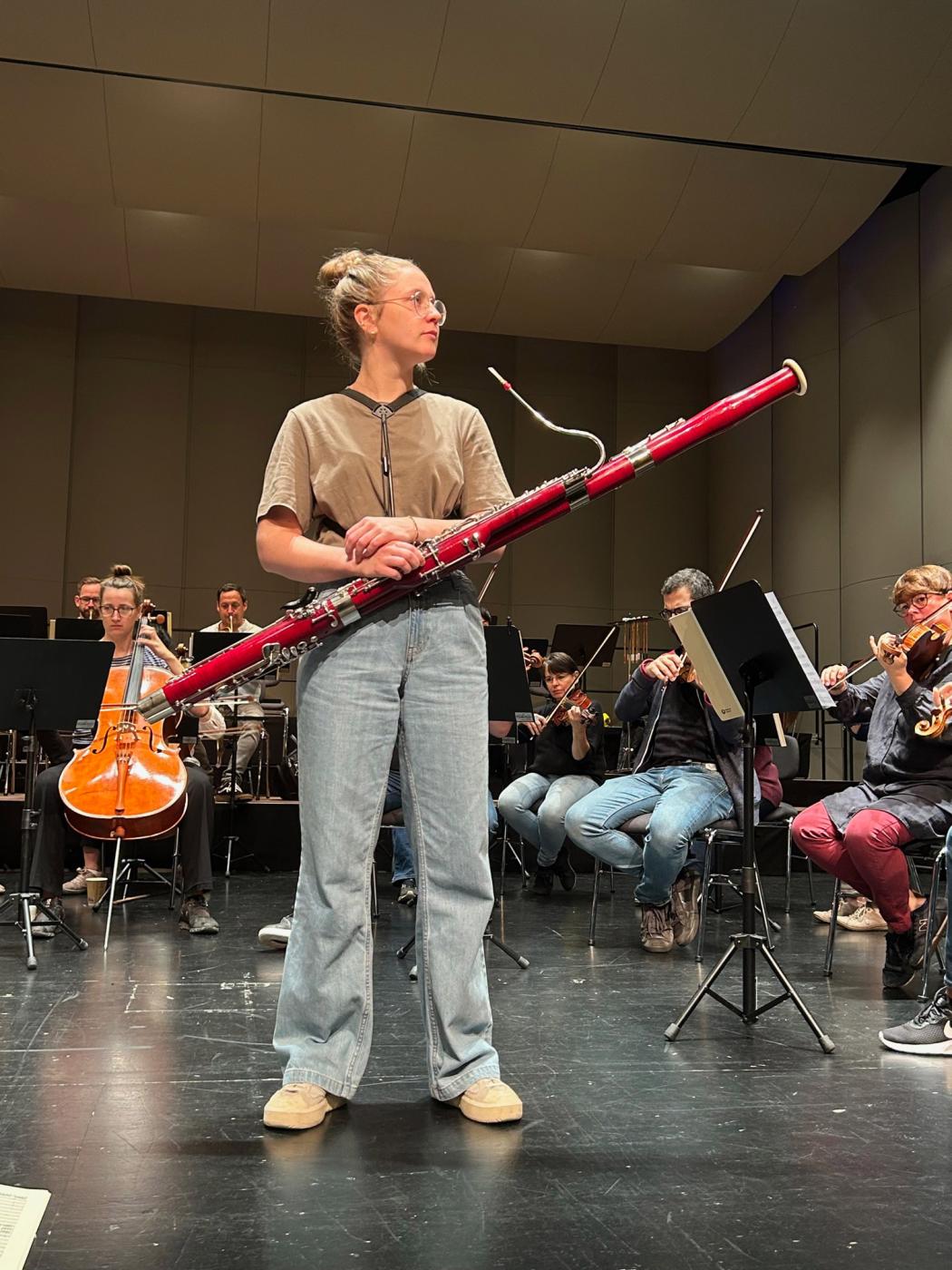 Der musikalische Leiter Hans-Peter Hofmann führte locker und unterhaltsam durch die einzelnen Werke, und ließ die junge Fagottistin Johanna Bilgeri glänzen. In der Probenpause stand Johanna für Fragen zur Verfügung.