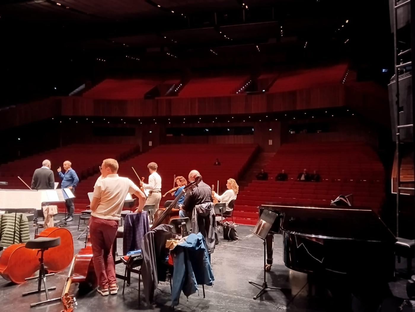 Eine kleine Runde von nimmermüden Interessenten besuchte die Abendprobe am Donnerstag. Man konnte die Erarbeitung von W. A. Mozarts Jupitersymphonie erleben und dem Solisten Kolja Blacher in der Pause kurz ein paar Fragen stellen, bevor er aufs Podium musste, um das Violinkonzert seines Vaters zum ersten Mal mit dem SOV anzustimmen.